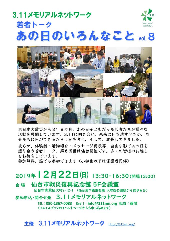 | 主催 | 3.11メモリアルネットワーク(若者プロジェクト) |