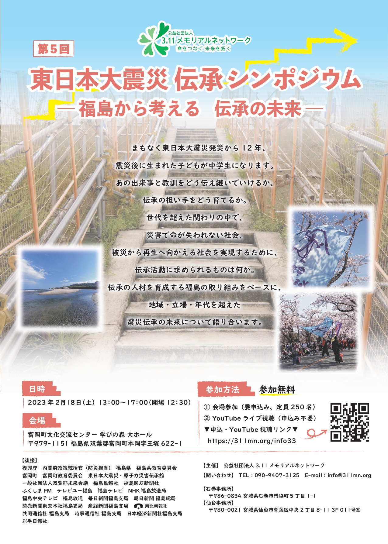 【告知】2/18(土) 第5回東日本大震災伝承シンポジウムin富岡-福島から考える 伝承の未来-