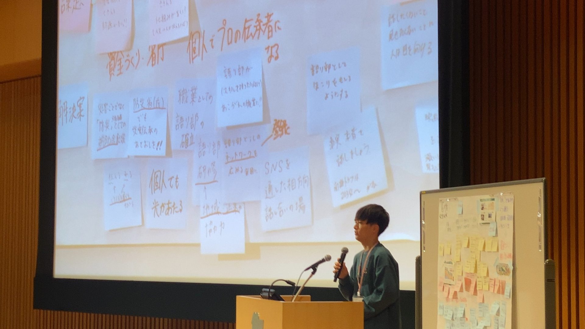 当団体からは、第1部「東日本大震災 被災者からのメッセージ」として、宮城・福島で伝承に取り組むお二方をおつなぎし発表していただきました。続く第2部、5つの分科会に分かれた大ワークショップには、各分科会にメモリアルネットワークの広域伝承連携部門運営委員をはじめとするメンバーにご参加いただき、東日本大震災の経験を提供しました。第3部では、代表理事・武田真一が登壇しパネルディスカッションを行いました。