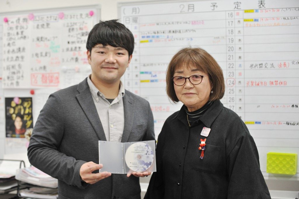 インタビュー後。手に持っているのは、語り人さんたちが作ったDVD。
