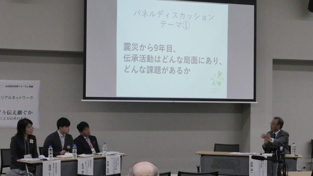3人それぞれの活動報告ののち、「3.11何をどう伝え 継ぐか〜ネットワークによる伝承の未来〜」をテーマにパネルディスカッションを行い、以下の内容で意見交換を行いました。